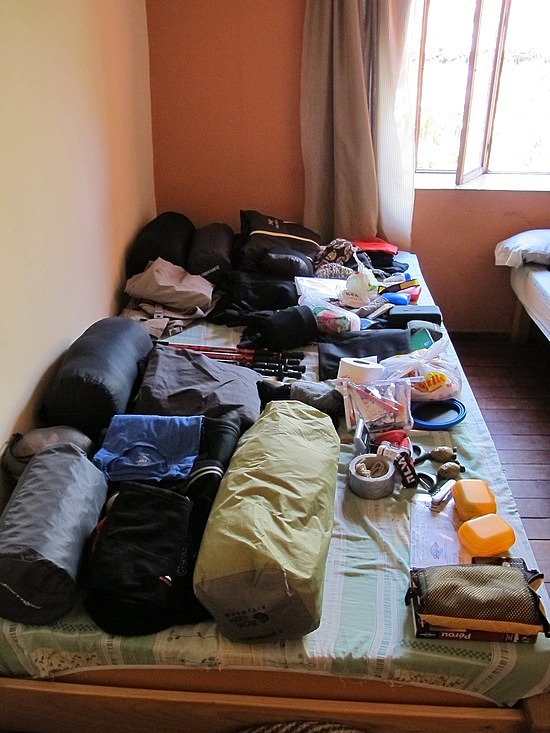 On est décidé demain on part pour le trek en autonomie. Du coup, on va acheter le nécessaire (nourriture, alcool pour le réchaud et on investi même dans des bâtons de marche) et on prépare les sacs. C’est chouette à notre auberge on peut laisser du matériel sous clé, on en profite !