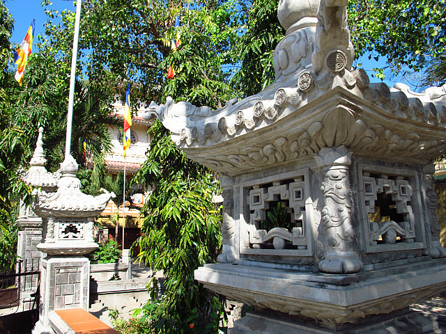 Il fait super chaud, on visitera des tours Cham, une galerie de photo, la cathédrale et un bouddha sur la colline. Petit stop pour manger dans un marché où nous étions vraiment les seuls touristes qui mangeaient :o) c’était bon. Vu que Nuno a encore perdu sa casquette, on lui en rachète une nouvelle (la 3ème) ! On trouve même des croissants pour notre petit déjeuner de demain. Après avoir ramené les vélos, nous partons à la plage se baigner et regarder le couché de soleil avec notre bière.